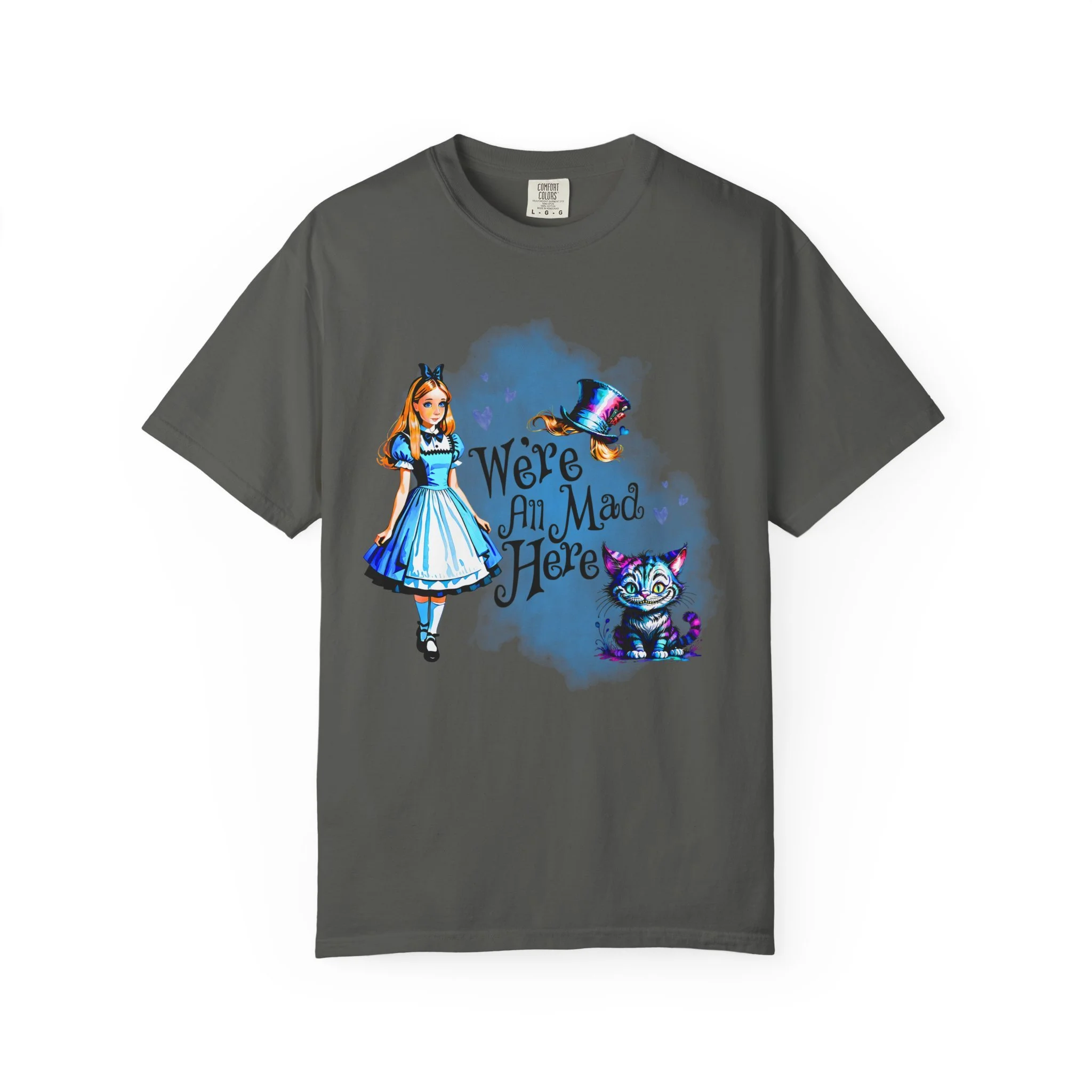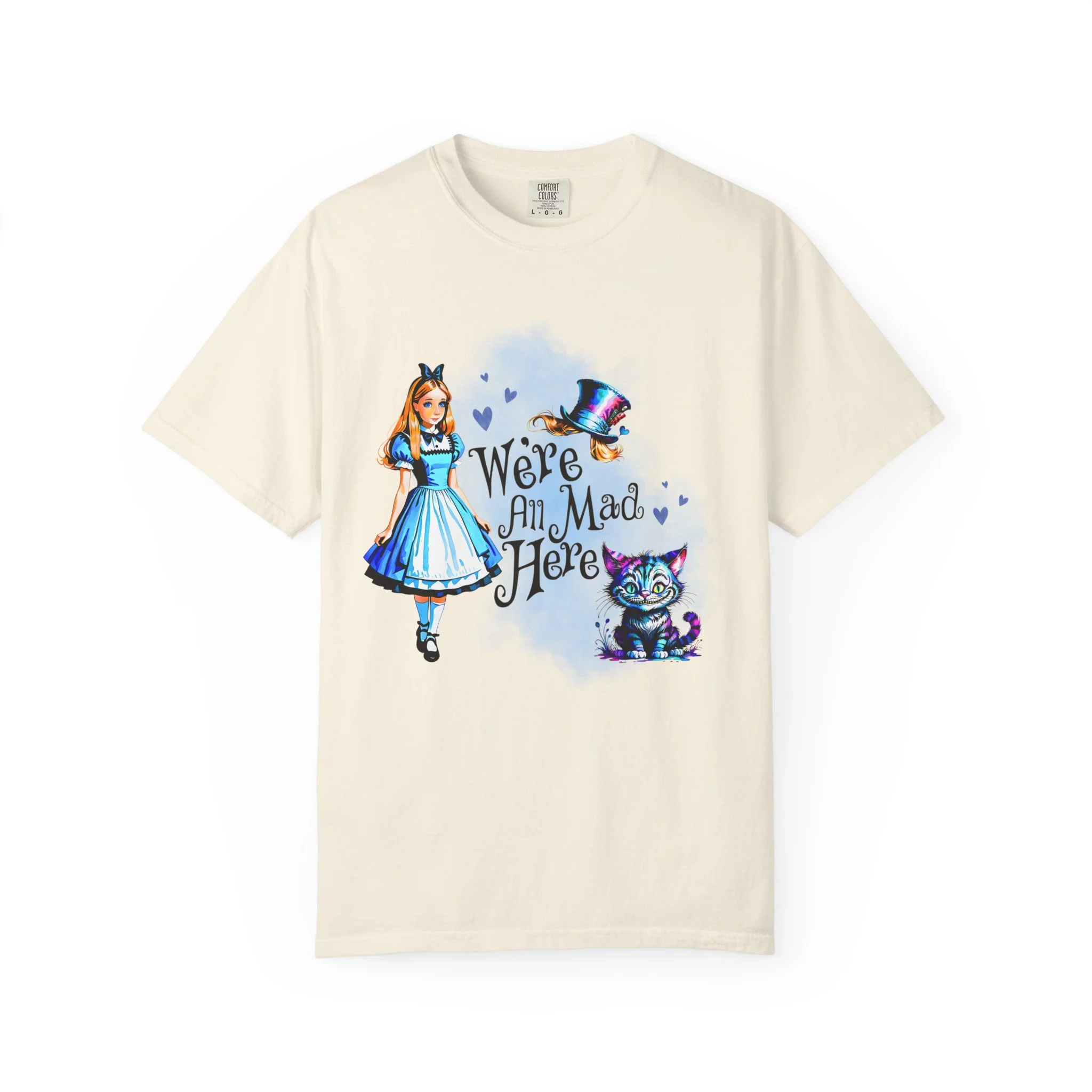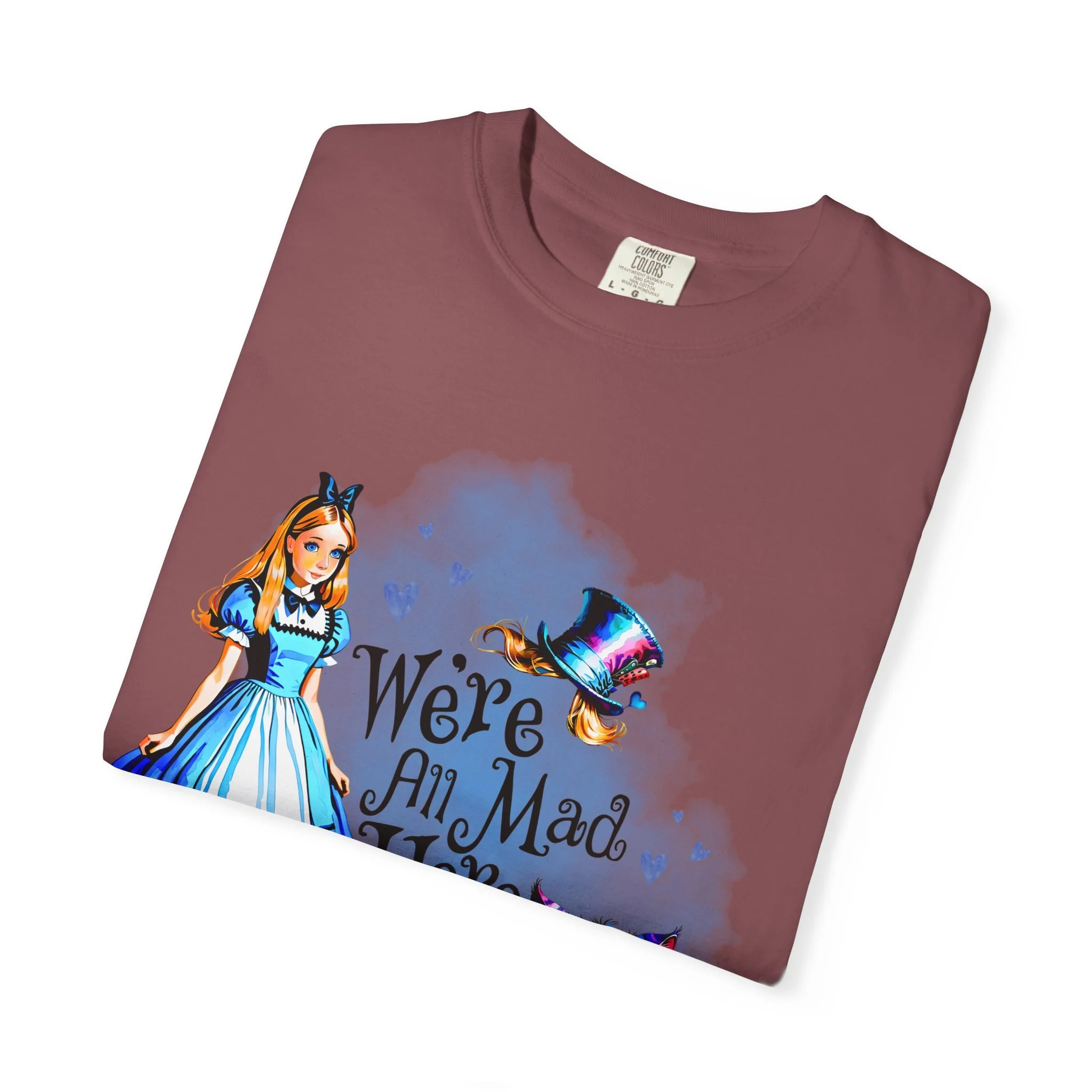 Step through the looking glass and embrace a little whimsy with this soft, relaxed-fit tee inspired by classic wonder and bold imagination. Crafted from 100% ring-spun U.S. cotton, the garment-dyed fabric offers a cozy, lived-in feel from the very first wear. Double-needle stitching adds durability, while the relaxed fit makes it the perfect everyday piece for dreamers, adventurers, and those who know that “we’re all mad here.”