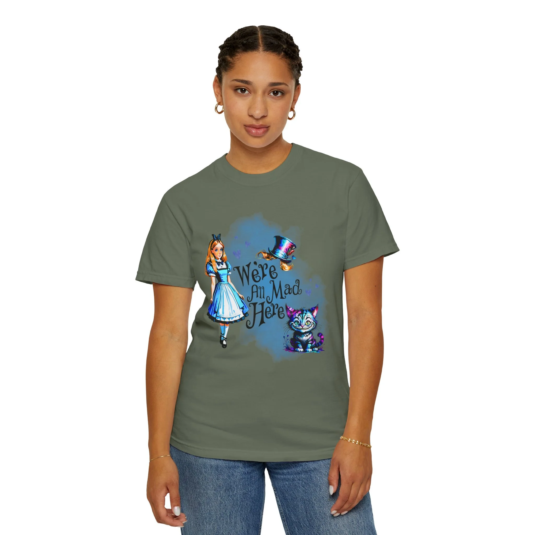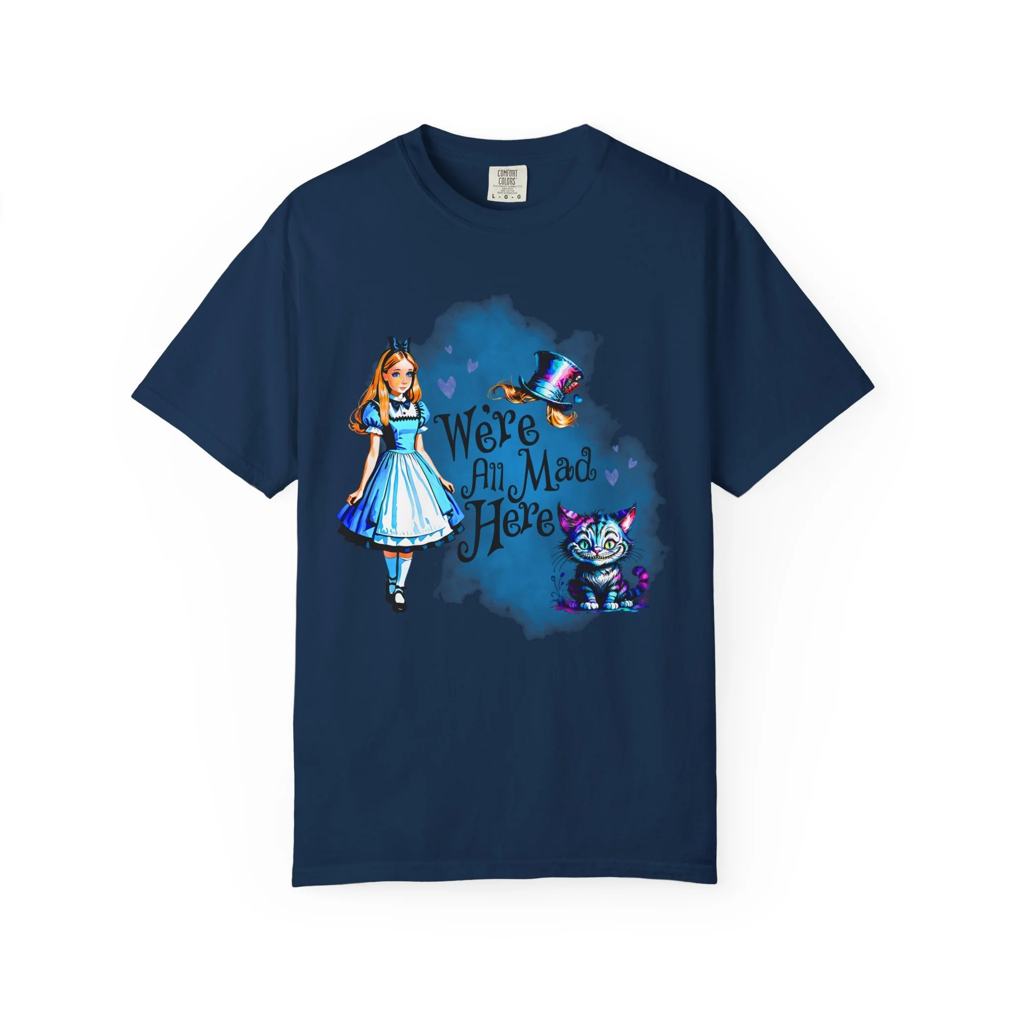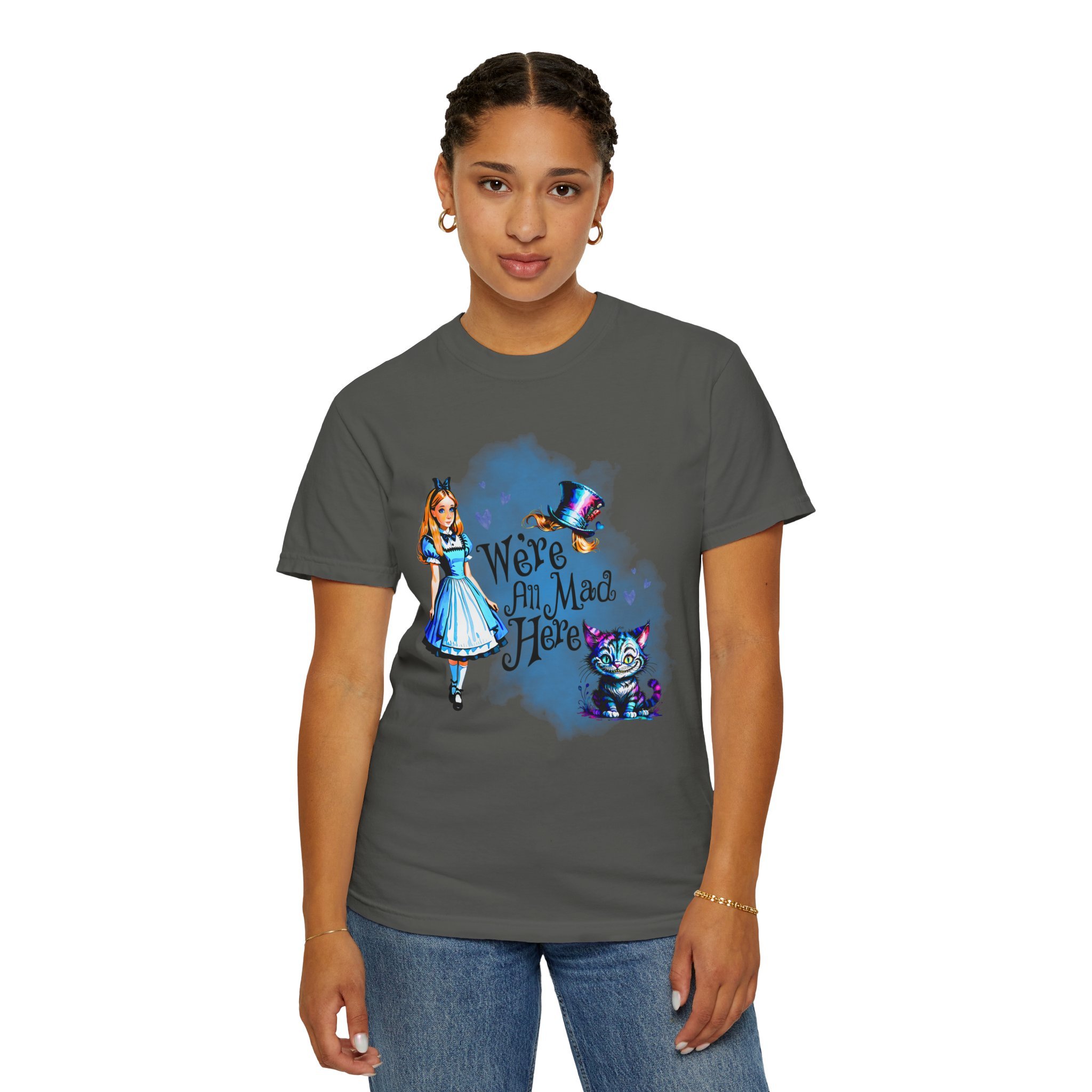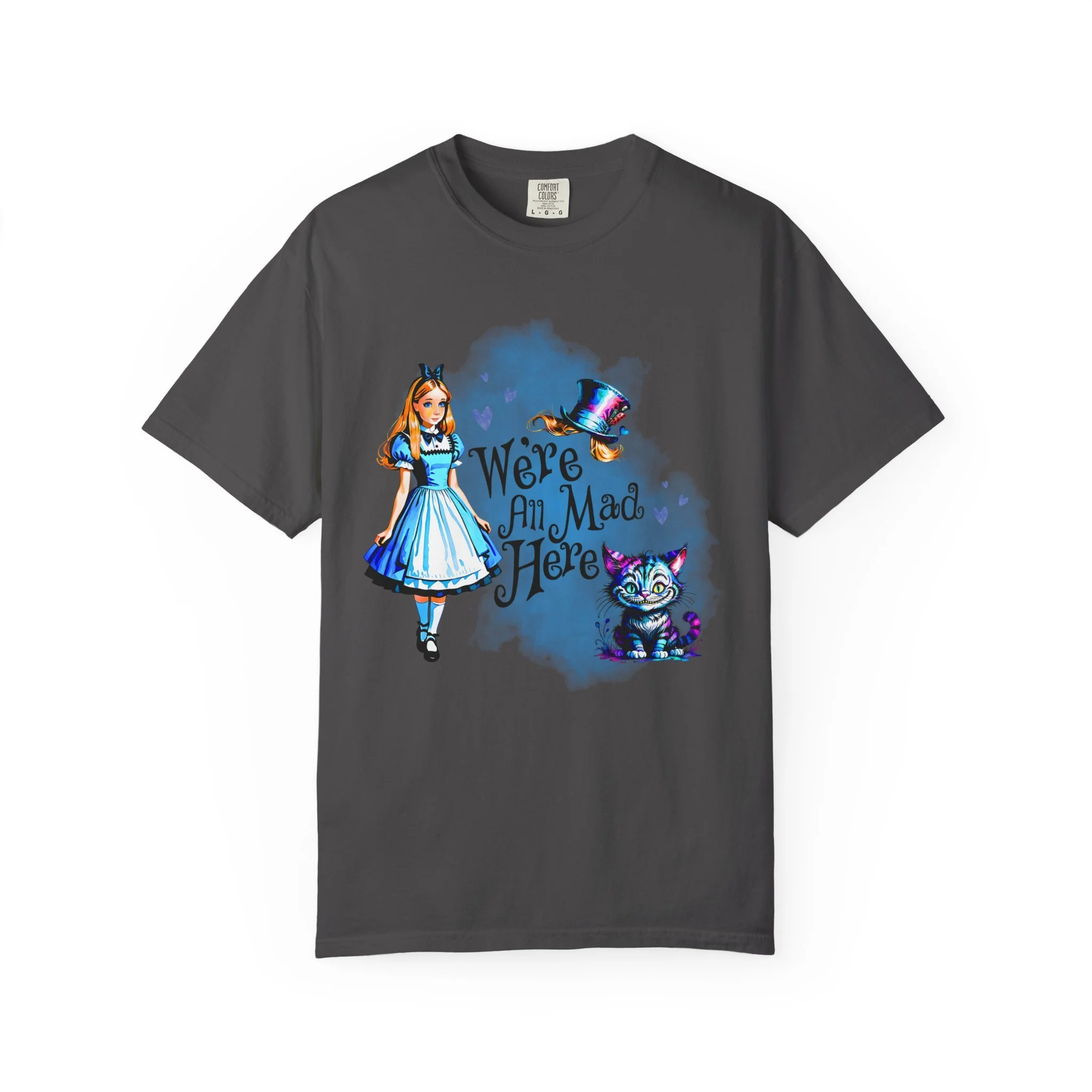 Step through the looking glass and embrace a little whimsy with this soft, relaxed-fit tee inspired by classic wonder and bold imagination. Crafted from 100% ring-spun U.S. cotton, the garment-dyed fabric offers a cozy, lived-in feel from the very first wear. Double-needle stitching adds durability, while the relaxed fit makes it the perfect everyday piece for dreamers, adventurers, and those who know that “we’re all mad here.”