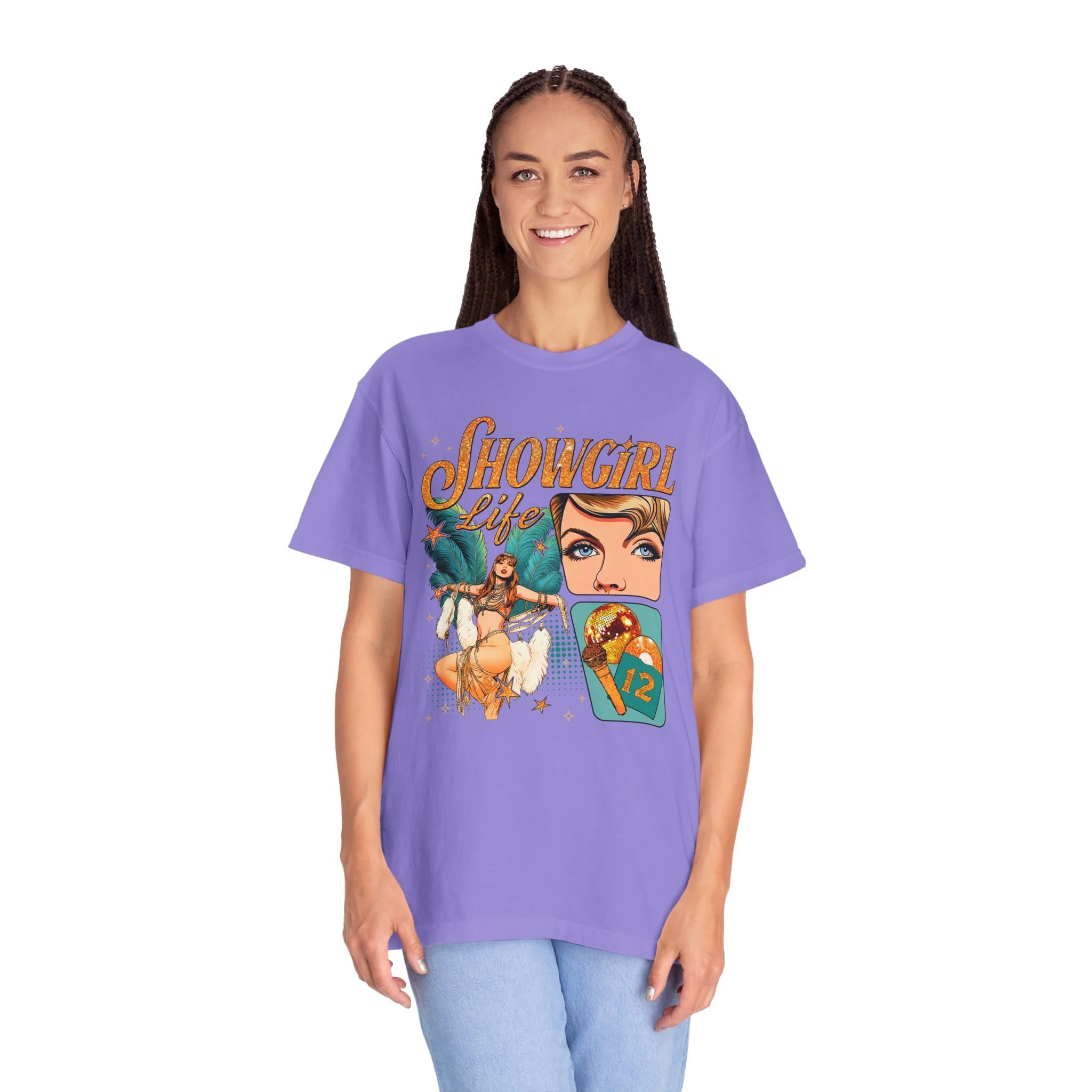 Bring a little show-stopping energy to your everyday wardrobe with the Stage & Sparkle Tee. Soft, cozy, and made for Swifties and showgirls alike, this tee is perfect for concerts, casual outings, or just celebrating your love for all things Taylor. Crafted from 100% ring-spun U.S. cotton with garment-dyed fabric, it feels soft and lived-in from the very first wear. Double-needle stitching ensures long-lasting durability, while the relaxed fit keeps you comfortable whether you’re dancing, running errands, or hanging out with friends.